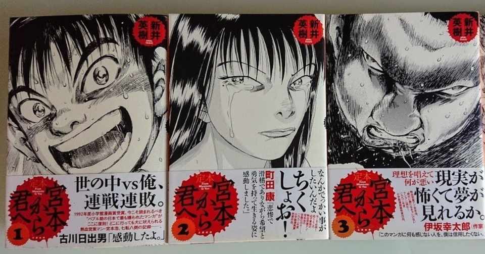 宮本から君へ新井英樹の漫画は読む人も多く大人気! 宮本から君へ新井英樹はネットでも常に話題になっているので、少しネットでの評判を見てみましょう! みんなの感想を見てるだけで、読みたくなってきちゃいますよー♪. . 「新井英樹」先生ならではの、 言語化するのも難しいような「エグさ」 が、この漫画にはある! 心をエグってくる 「岩男」の親は、後継者を望んではいるものの、フィリピン人の嫁を貰うことを「恥」と考え、「岩男」の結婚に激しく反対する。.